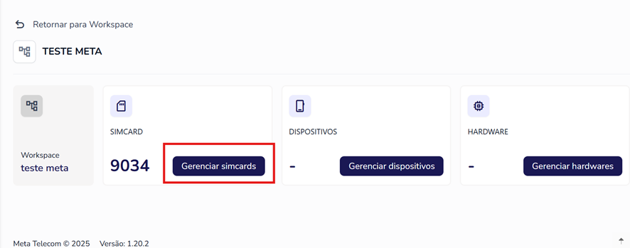 Para incluir linhas no novo Workspace, primeiro é necessário acessar o Workspace onde esses SIMCards estão atualmente.