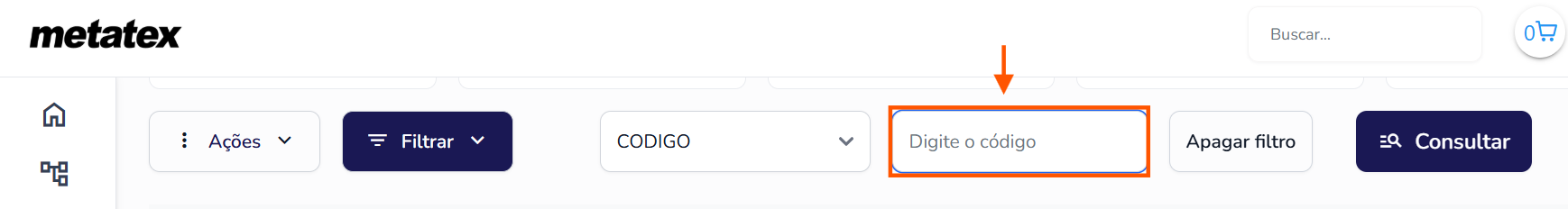 Para utilizar o filtro, acesse Filtrar > Pedido > Código do pedido > Insira o código do pedido.